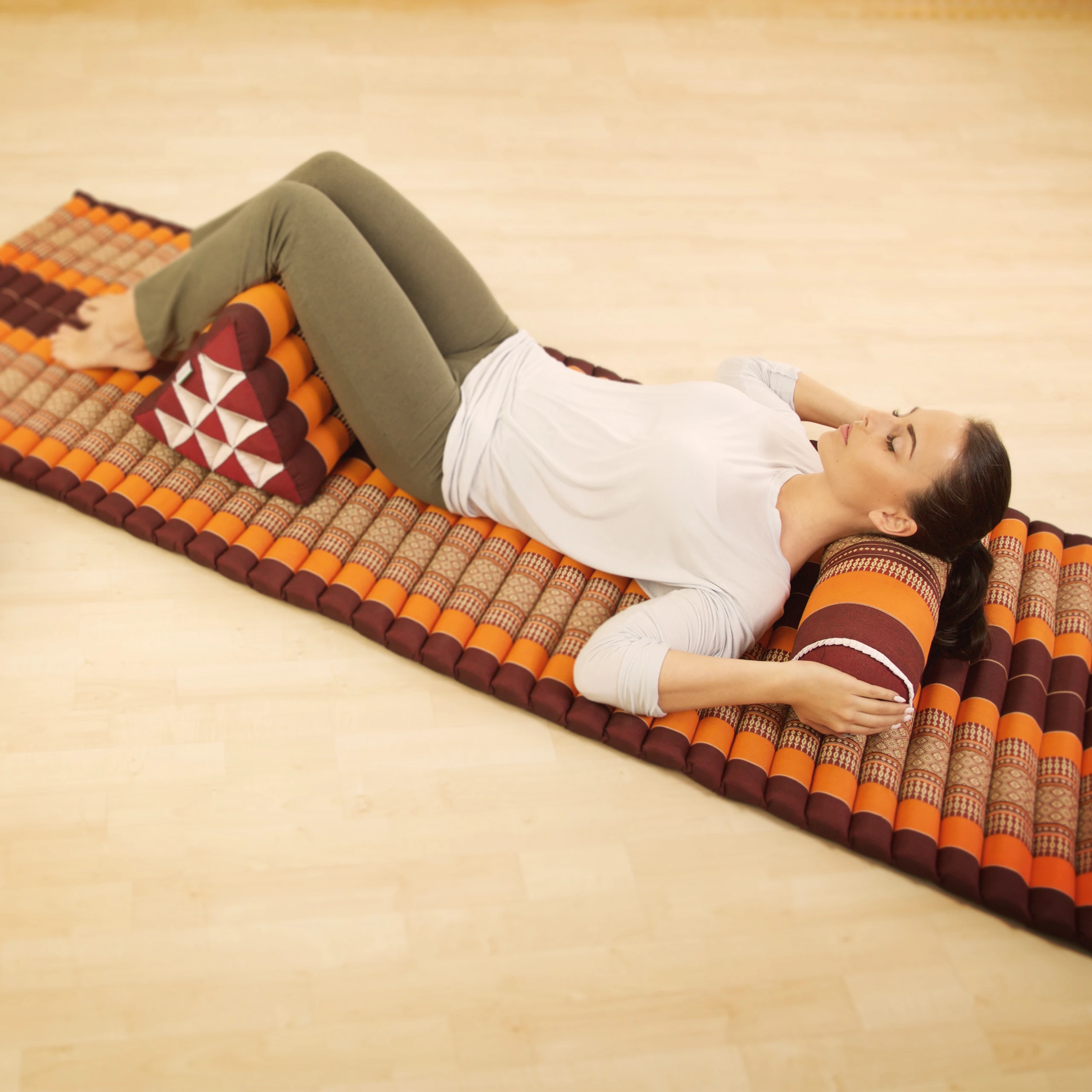 Mi piacciono molto i tappetini tailandesi. Li uso ogni giorno in diverse dimensioni come divano da terra, grazie al quale ho meno mal di schiena e ora, dopo un anno, sono molto più mobile. Dovremmo davvero sederci tutti di più per terra! Inoltre portano un tocco esotico nel mio soggiorno!
